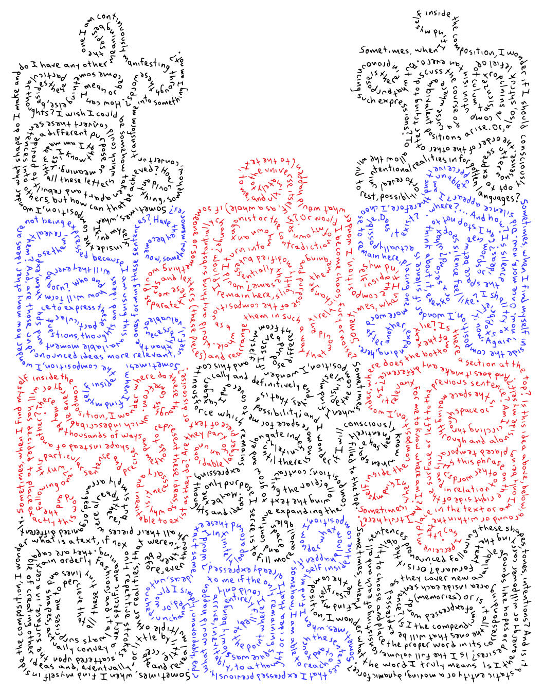 And here I am again. And you can certainly follow each one of the words as I present them to you, and you understand each one of these sentences and therefore they may seem meaningful but for me they have become meaningless. Meaningless by the exertion of repetition.